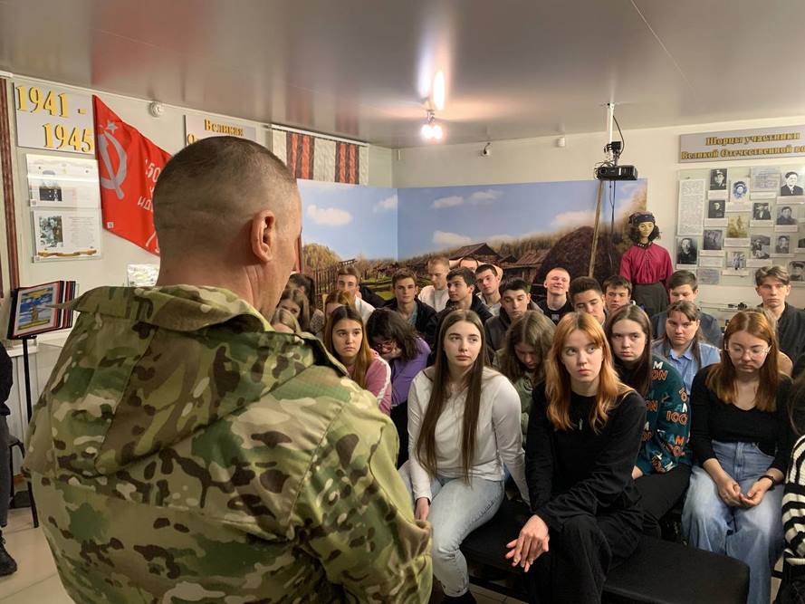Представители спецназа и добровольцы отряда «Барс» рассказали молодежи о своей службе, о героизме своих сослуживцев и о том патриотическом духе, который царит в рядах российских военнослужащих и добровольцев.