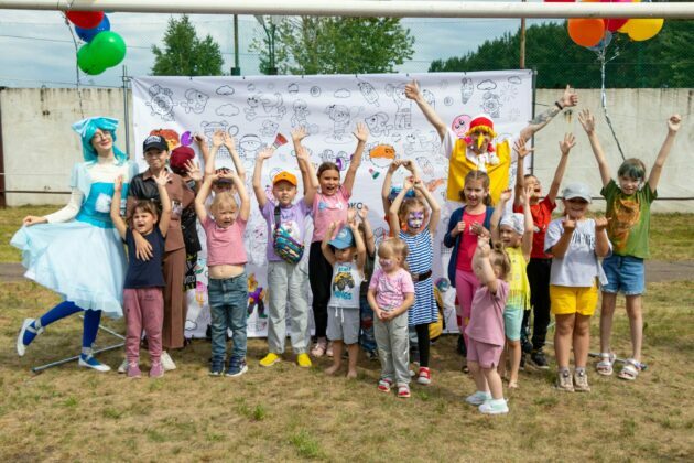 Для самых маленьких участников праздника на территории турбазы развернули интерактивные площадки. Кто-то сразу выбрал бассейн, с удовольствием плавал с надувными кругами и самолётами. Кто-то схватил водяной пистолет и устроил настоящую битву.