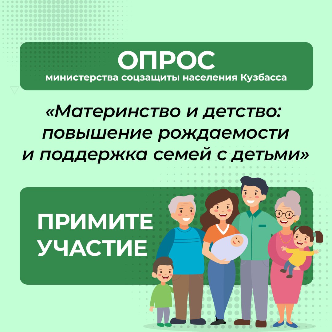 Министерство соцзащиты Кузбасса до 15 сентября 2023 года проводит опрос «Материнство и детство: повышение рождаемости и поддержка семей с детьми»