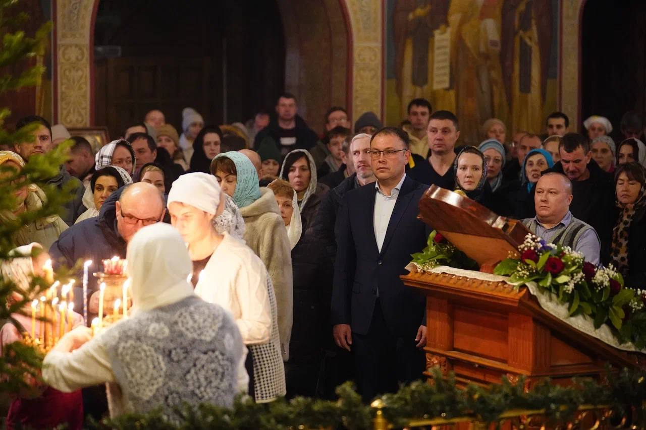 Губернатор Кузбасса Илья Середюк встретил Рождество в Знаменском кафедральном соборе