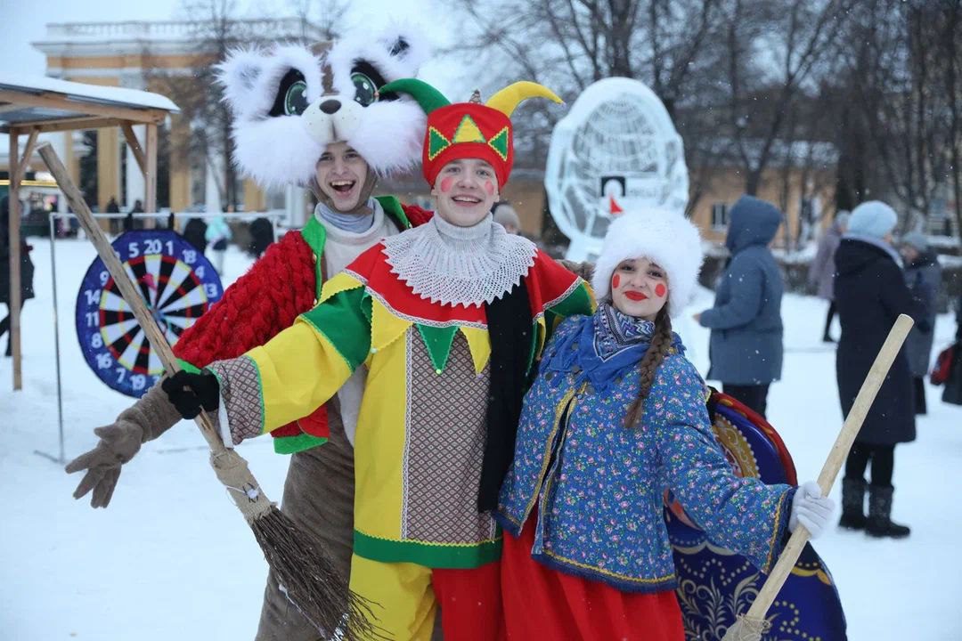 В Кемерове на площади Советов прошла программа с участием скоморохов, фольклорных ансамблей и героев в народных костюмах. Горожане пели, танцевали, исполняли колядки, участвовали в играх и забавах, организованных на десяти игровых локациях.