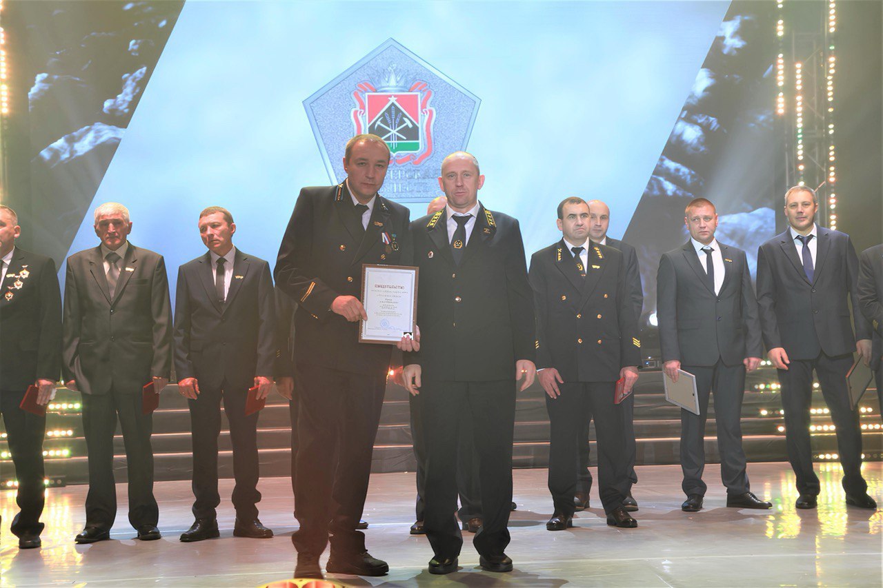Ведомственные, муниципальные и корпоративные награды в этот день получили более 50 работников, среди них проходчик Сергей Ледяев и горномонтажникАндрей Цыганков, награждённые золотым нагрудным знаком «Шахтёрская доблесть».