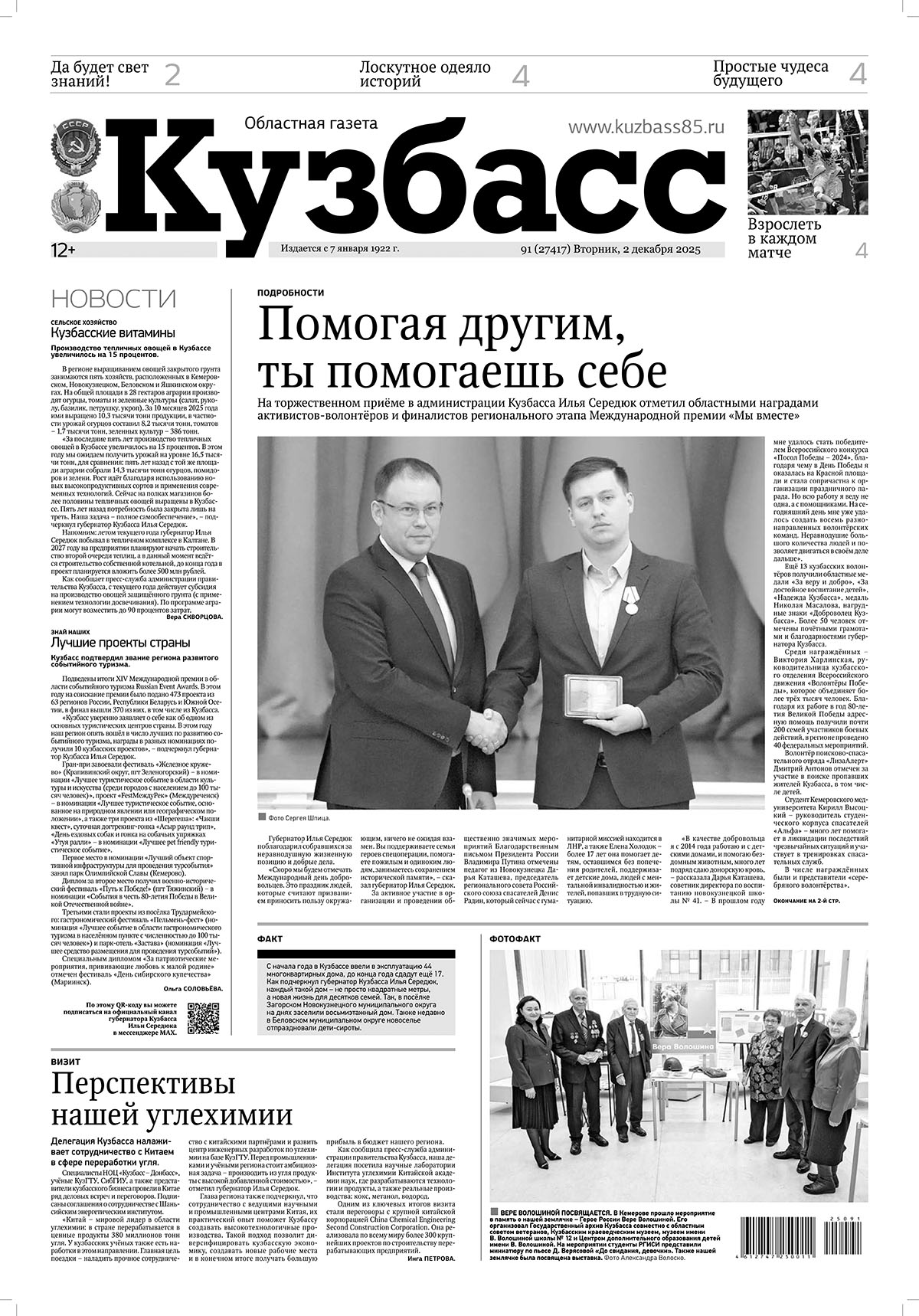 A+ A- Выпуск газеты "КУЗБАСС" в PDF 0 Кузбасс, 02 декабря, 2025, PDF 2 декабря 2025 | Дмитрий Шубин Кузбасс, 02 декабря, 2025, PDF выпуск в PDF