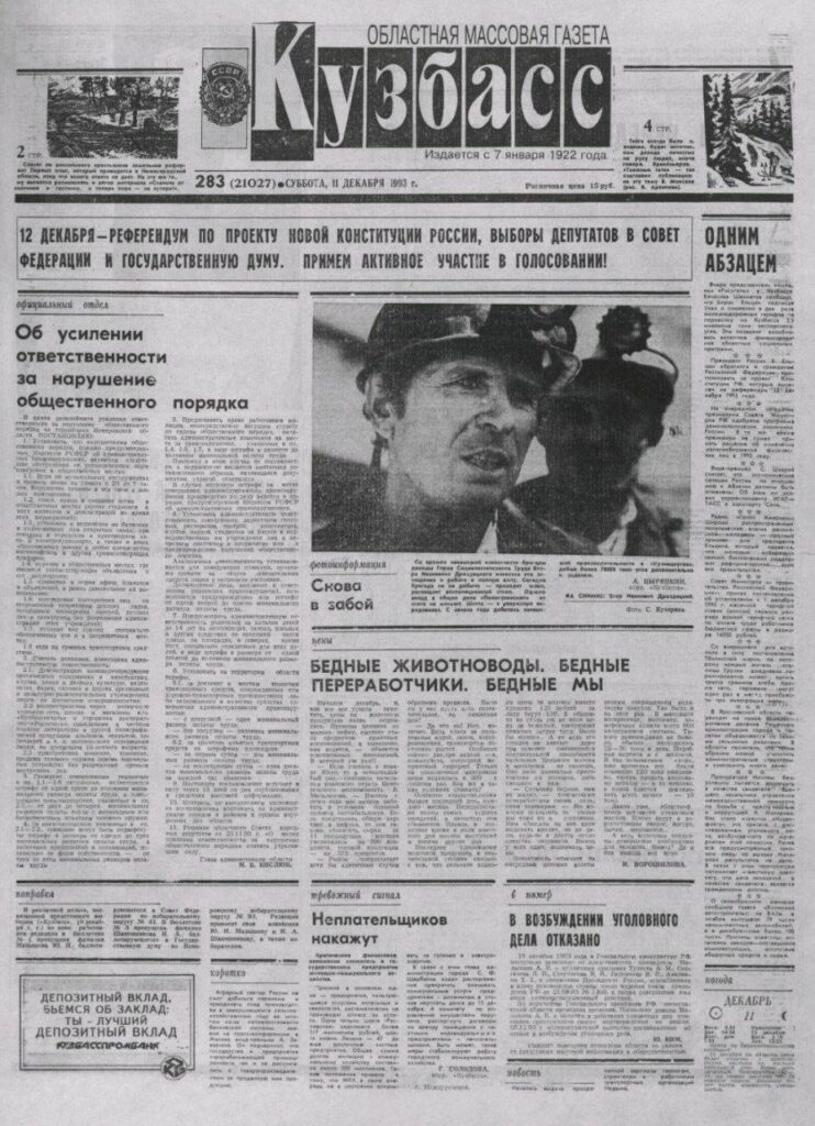 Напомню: «Кузбасс» включён в золотой фонд прессы России и признан в 2009 году лауреатом Премии Правительства РФ.
