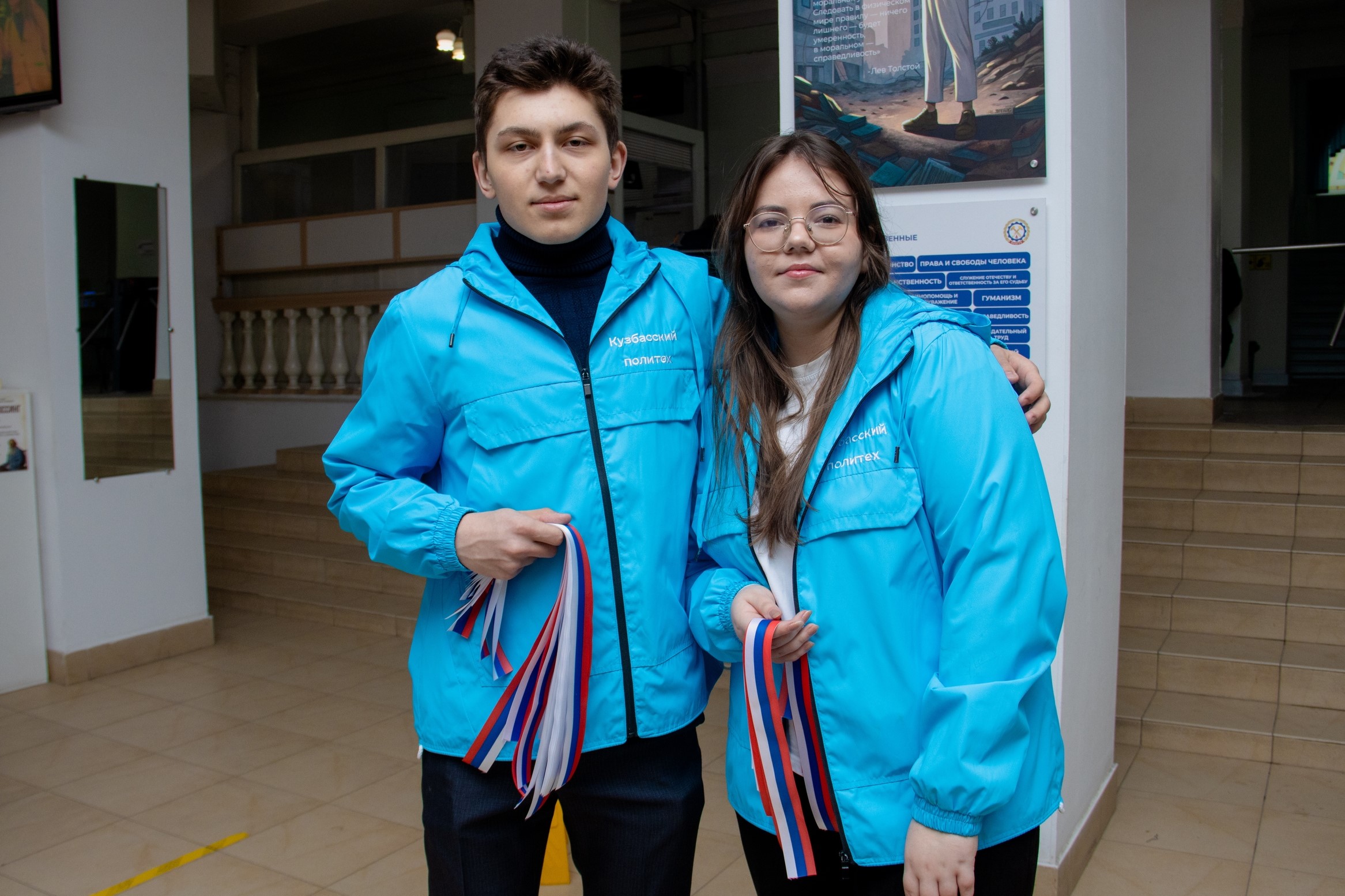 Несомненно свое участие в акциях приняли бойцы Российских студенческих отрядов, которые с гордостью приняли участие в раздаче триколорных ленточек студентам учебного заведения. Эти яркие символы – красная, синяя и белая полосы – не только украшали студентов, но и становились символом единства, свободы и независимости нашей Родины. Их раздача вызвала живой отклик, напоминая о значимости исторических событий и о том, что мы гордимся нашей общей историей и ценностями.