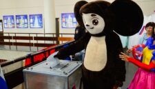 В Кузбассе на голосование пришел Чебурашка